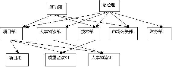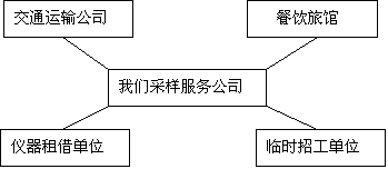公司下属五部,项目部负责具体承接项目的实施,人事物流部负责人事安排和物流运输,技术部负责技术开发和质量监察,市场公关部负责市场开拓、企业宣传和对外关系,财务部负责资金管理、财务预算和成本控制等。顾问团对公司的经营管理及技术开发、质量监察提供咨询和指导。 我公司在具体运营过程中会与交通运输公司、餐饮旅馆、仪器租借单位、临时招工单位等建立合作网络,形成伙伴关系,保证所承接项目的顺利进行和控制经济成本。