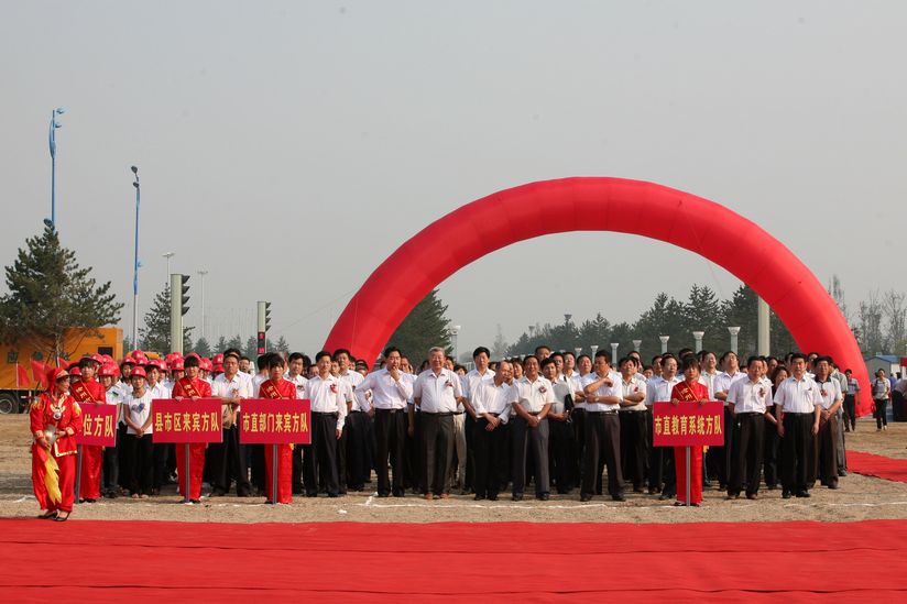 主席台领导为沧州市第一中学迁建工程奠基。奠基现场礼炮齐鸣,响彻云霄。沧州市第一中学迁建工程正式拉开了帷幕。