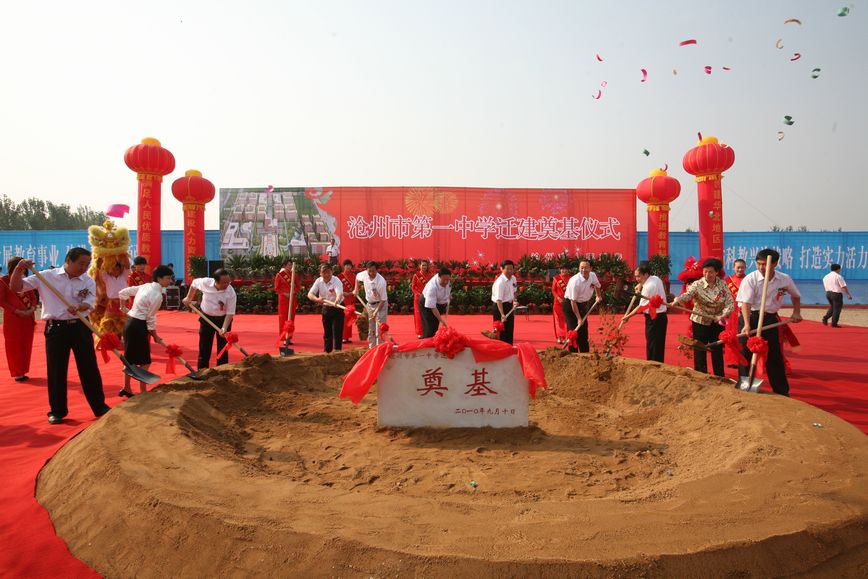 在欢庆第26个教师节的喜庆时刻,沧州市第一中学迁建工程于昨日开工奠基。到2012年底,一所容纳7000人的华北地区一流示范性高中将矗立在沧州西部新城。