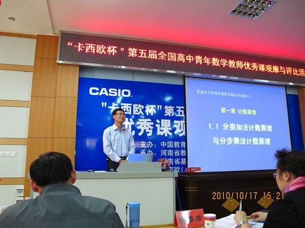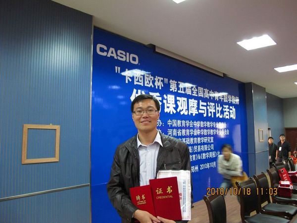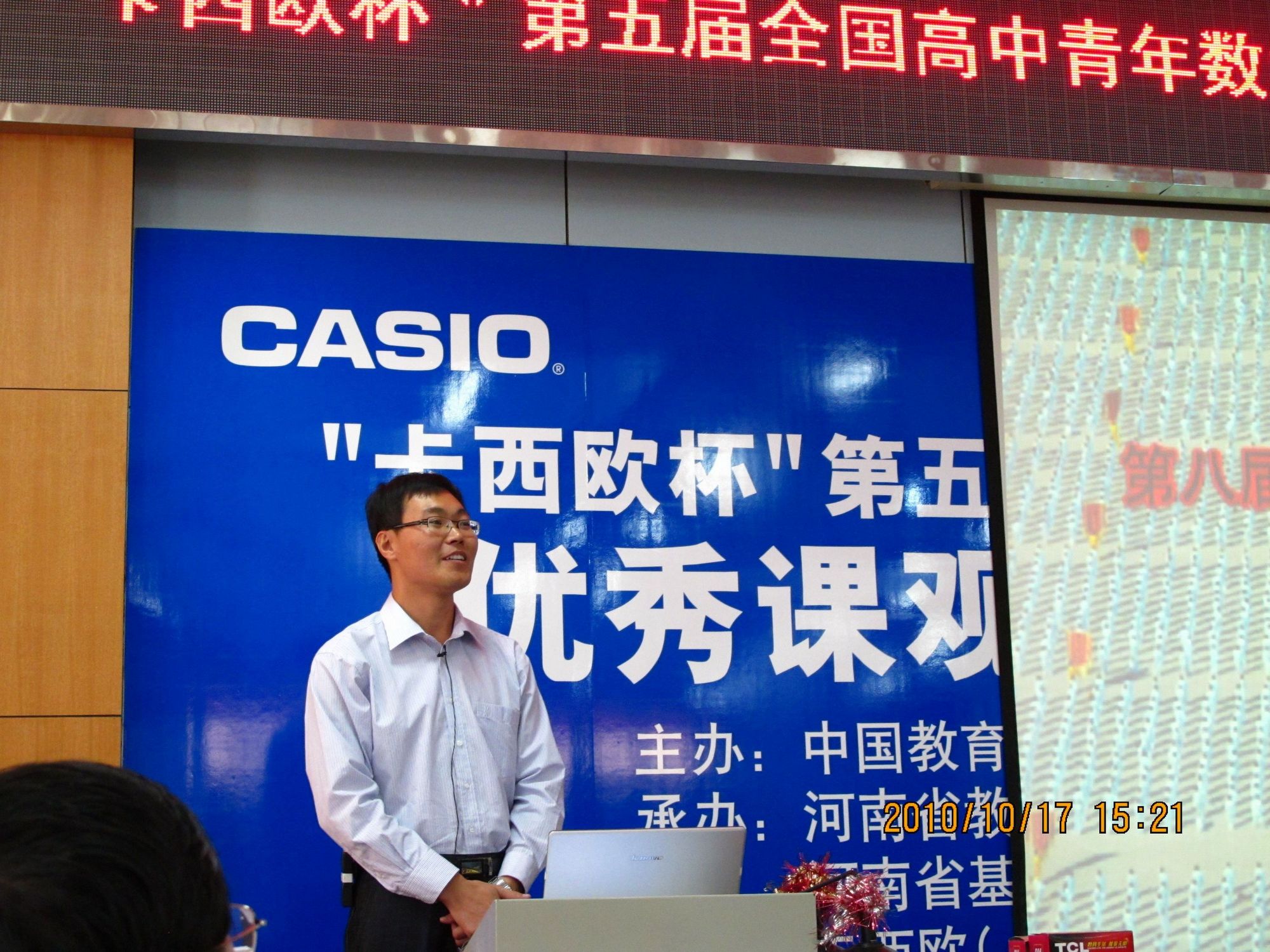 由中国教育学会中学数学教学专业委员会主办的“卡西欧杯”第五届全国高中青年数学教师优秀课观摩与评比活动于2010年10月15日—19日在河南省郑州市举行,来自全国30多个省、直辖市、自治区的65名选手参加了这项大赛,代表河北省参赛的我校