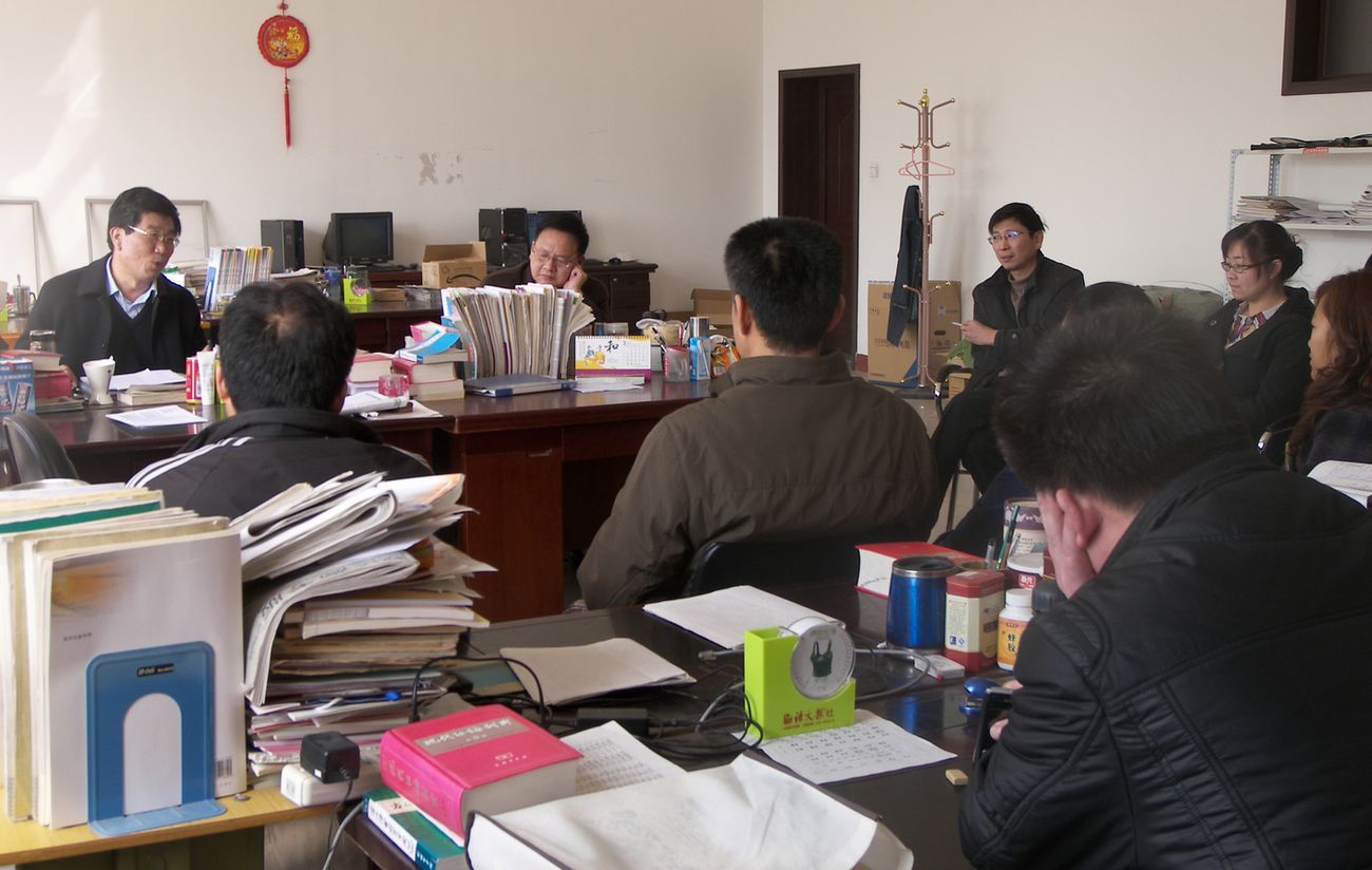 我校校长刘月廷、副校长钱卫军、教学处主任马长水等出席了汇报会。检查团听取了我校校长刘月廷所做的实施新课程情况的汇报。