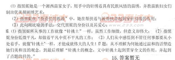 14. “黑妮就在其中做穿针引线的工作”一句单独成段,联系全文,谈谈作者这样写的用意以及你对这句话的理解。(6分)