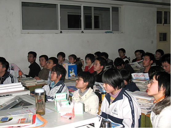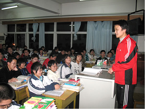 2月14日晚自习时,两名现就读于大连理工大学的我校07届毕业生来到高二(19)班开展“母校行”社会实践活动。