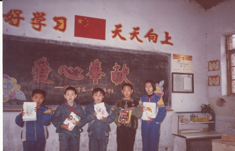 • 手拉手活动一中师生与贫困儿童合影