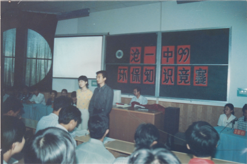 1999年5月,牛来恒老师在选修课-环保现场示范课上做精辟的讲解