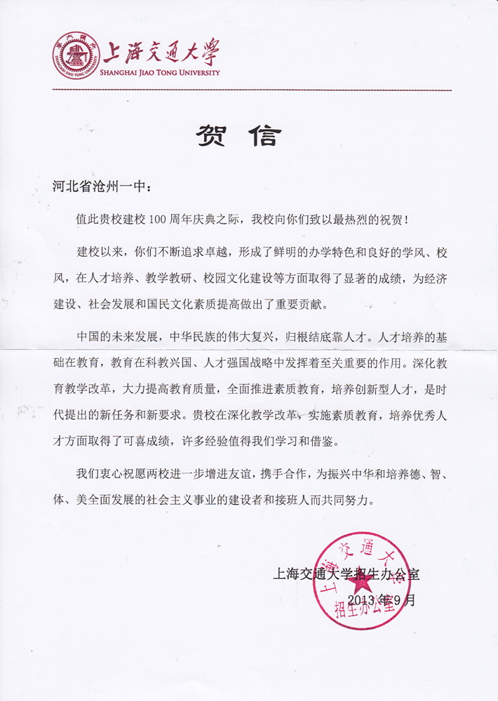 • 大连理工为我校发来贺电2013-09-16 21:10