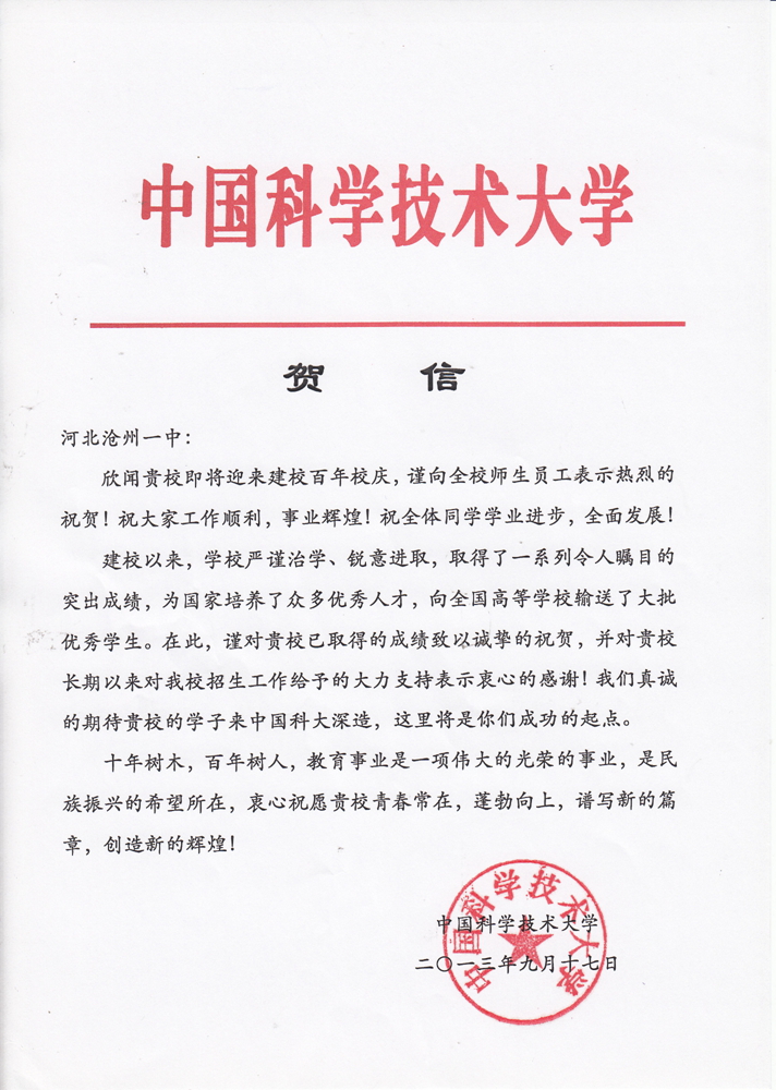 • 天津大学向我校发来贺电2013-09-17 15:56