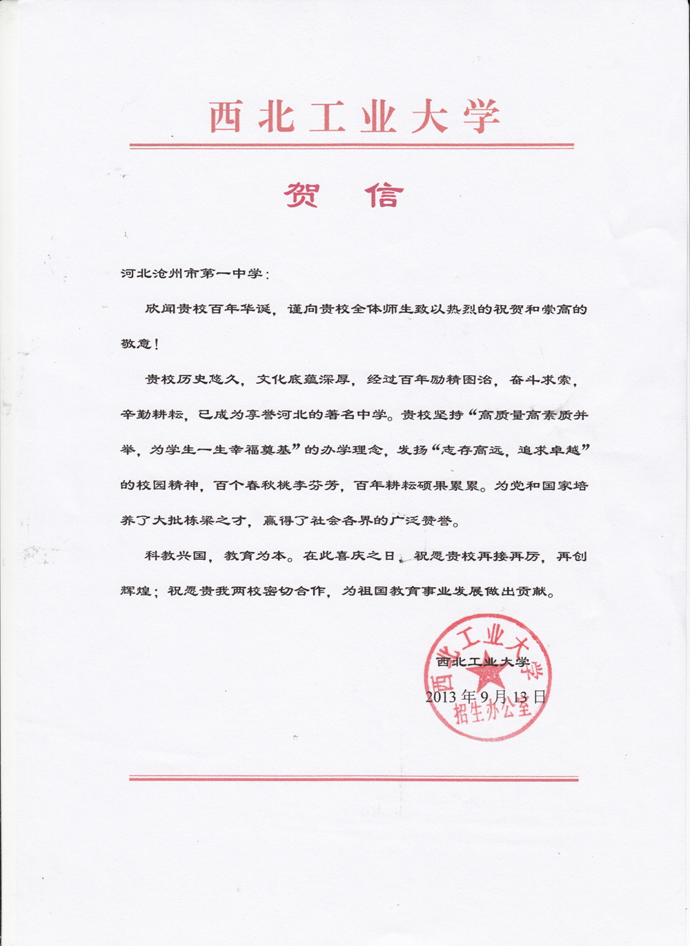 • 浙江大学向我校发来贺电2013-09-19 09:46