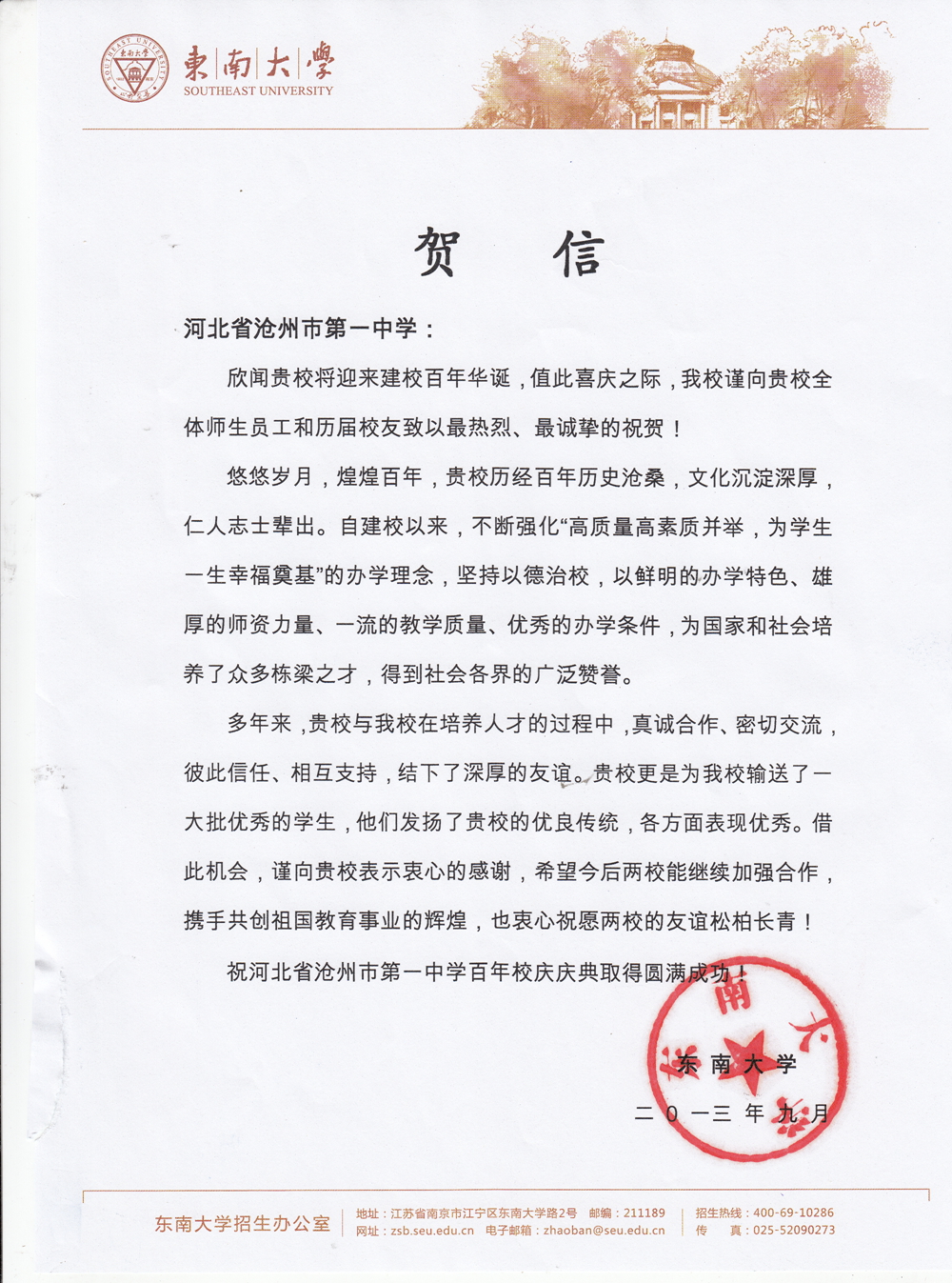 • 河北师范大学为我校百年校庆的贺信2013-09-24 19:34