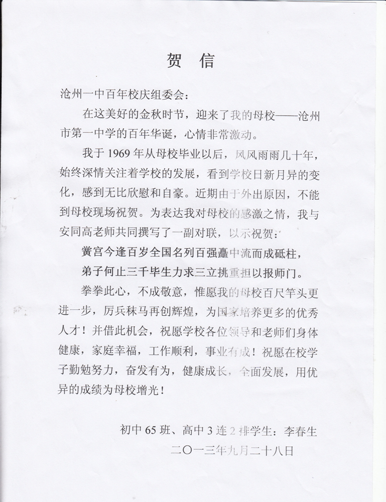 • 西安交通大学沧州一中校友会给母校的信2013-09-27 06:20