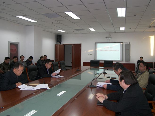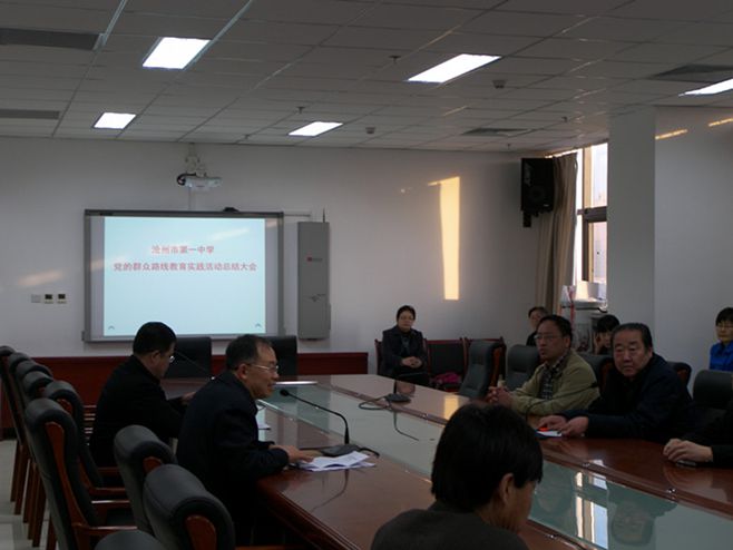 校长兼党委书记刘月廷对学校党的群众路线实践活动进行总结。按照市委统一部署,在第九督导组的精心指导下,沧州一中今年2月开始在全校深入开展党的群众路线教育实践活动,严格遵循教育实践活动的指导思想、基本原则、目标任务,紧密联系学校工作实际,周密计划、精心组织、扎实推进,圆满完成了教育实践活动学习教育、听取意见,查摆问题、开展批评,整改落实、建章三个环节的工作,达到了进一步提升思想认识,进一步认清“四风”方面突出问题,进一步明确整改措施的预期目标,有力的促进学校各方面工作的开展。学校教育教学质量稳步攀升,学校整体搬迁平稳、顺利,实现了历史性跨越式发展。全体教职员工精神风貌焕然一新,潜心教书,耐心育人,学校风清气正,秩序井然,教育实践活动取得实效。