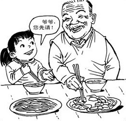 孝敬老人,在我们很多家庭,这可是最重要的规矩了。可还记得爸爸妈妈的叮嘱:吃饭时,要请长辈先入座;长辈未动筷,小辈不要先动……