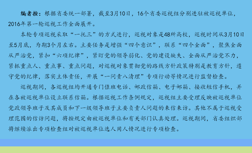 • 省委第一轮专项巡视工作近日启动2016-03-02 08:07