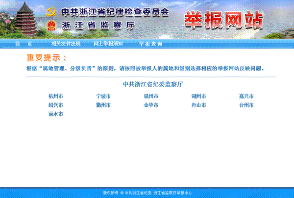 2015年10月,省纪委监察厅举报网站全面升级。这意味着,浙江省群众举报更加便捷,举报信处置更加高效。