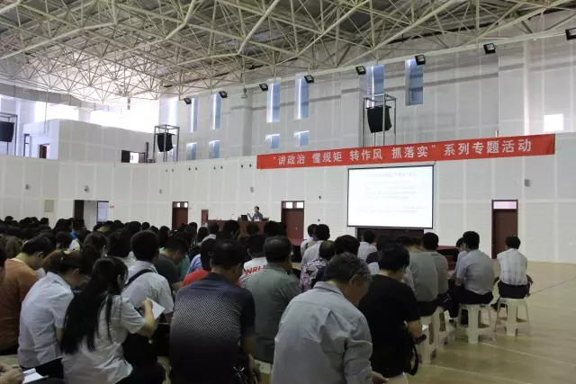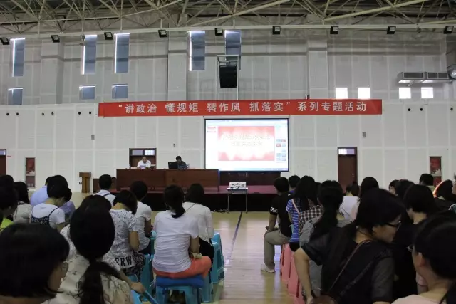 为学习贯彻习近平总书记重要讲话精神和中央重大决策部署,深刻领会十八届六中全会和省市九代会精神,深入推进机关作风建设,为我校发展提供思想保障,我校于5月19日下午,在学校体育馆,举办了“讲政治、懂规矩、转作风、抓落实”系列活动之一——专题讲座。