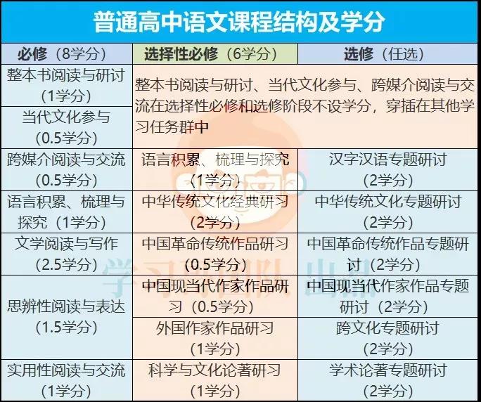 相较于2003年版的必修课程+选修课程的课程结构,新版课程标准新课程结构调整为必修课程+选择性必修课程+选修课程。