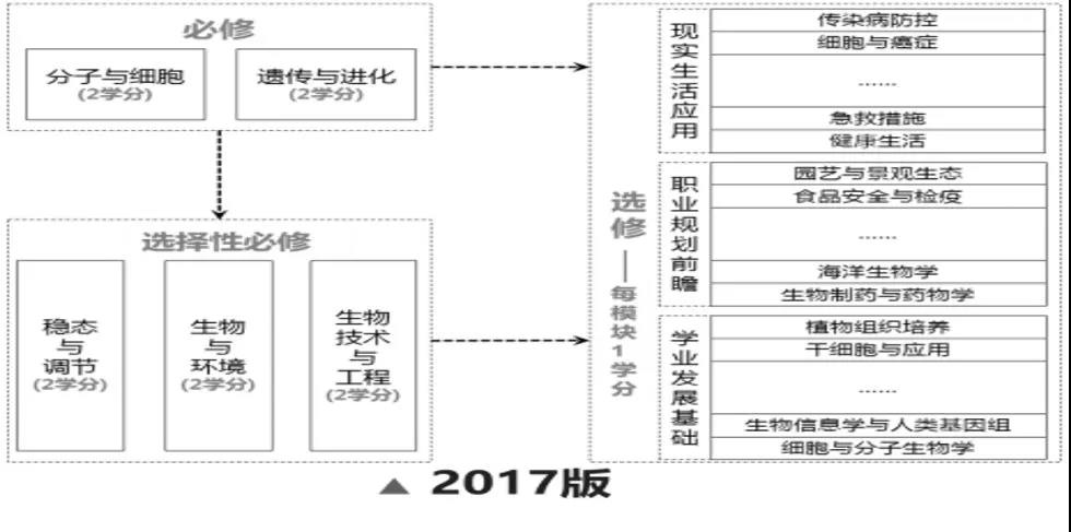 (1)变化前是以教材来区分必修、选修,变化后是以知识模块来区分必修、选修。划分更加细致、科学、合理。