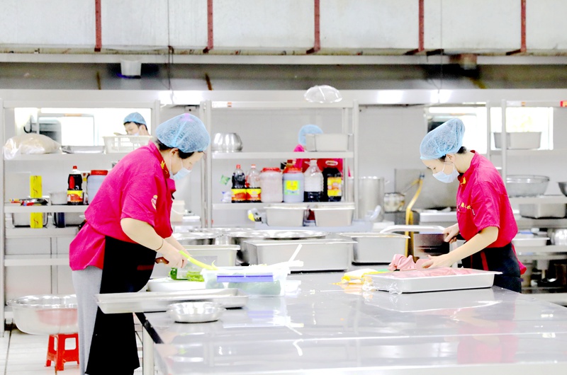 学校餐厅将食材的加工工作间划分为,蔬菜粗加工工作间、面点加工工作间、食材清洗间等。在餐具的消毒方面,学校建立了完善的餐厅消毒机制,各部门严格监督,监管到位。