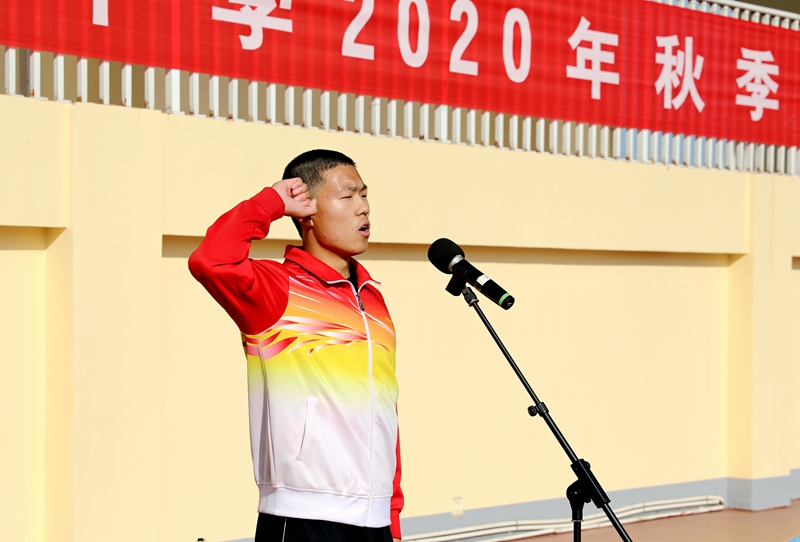 副校长顾新立宣布沧州一中2020年秋季田径运动会开幕。