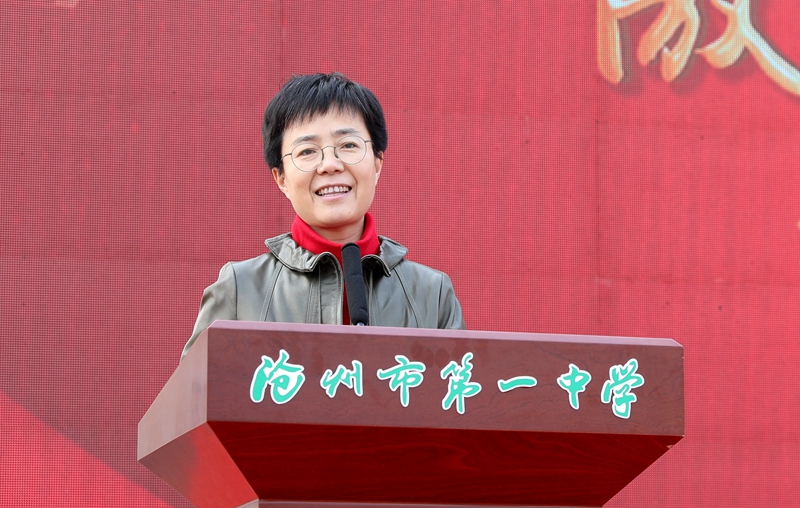 高三28班施俊清同学的家长代表全体高三学生家长发言。她殷切地叮咛全体高三学生,认识自己、战胜自己、超越自己,活出一中人的样子,考出一中人的风采!